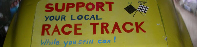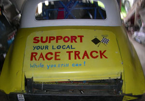 That Love of racing is expressed on the back of this racecar, a message that reads: “Support Your Local Race Track, While You Still Can!”